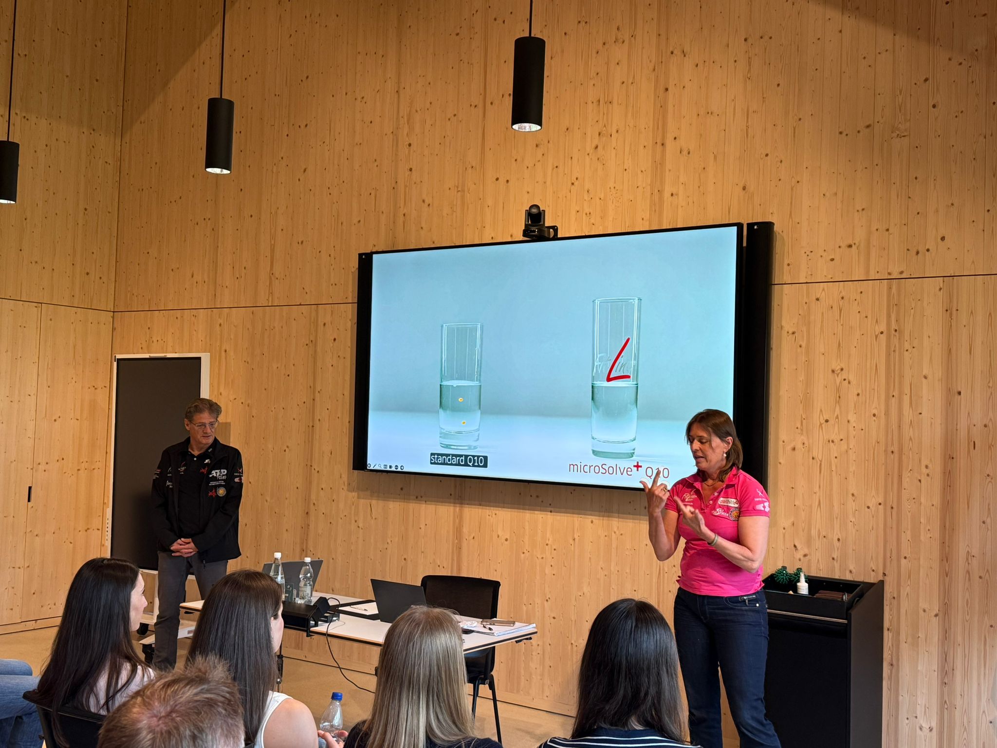 Im Anschluss präsentierten Thomas Rauscher, Geschäftsführer der PM‑International AG (Schweiz), und NLZ‑Ost‑Ansprechpartnerin Veronica Baumann das Ernährungs­konzept von FitLine. Sie erläuterten praxisnah, wie die Produkte Athlet:innen in Training und Regeneration unterstützen können. Thomas Rauscher tritt Ende Juni in den wohlverdienten Ruhestand. Das NLZ Ost bedankt sich herzlich für seine langjährige Unterstützung und wünscht ihm alles Gute. Gleichzeitig heissen wir die neue Geschäftsführerin Lucrezia Späth willkommen und freuen uns auf eine weiterhin erfolgreiche Zusammenarbeit mit PM‑International und ihren FitLine-Produkten.