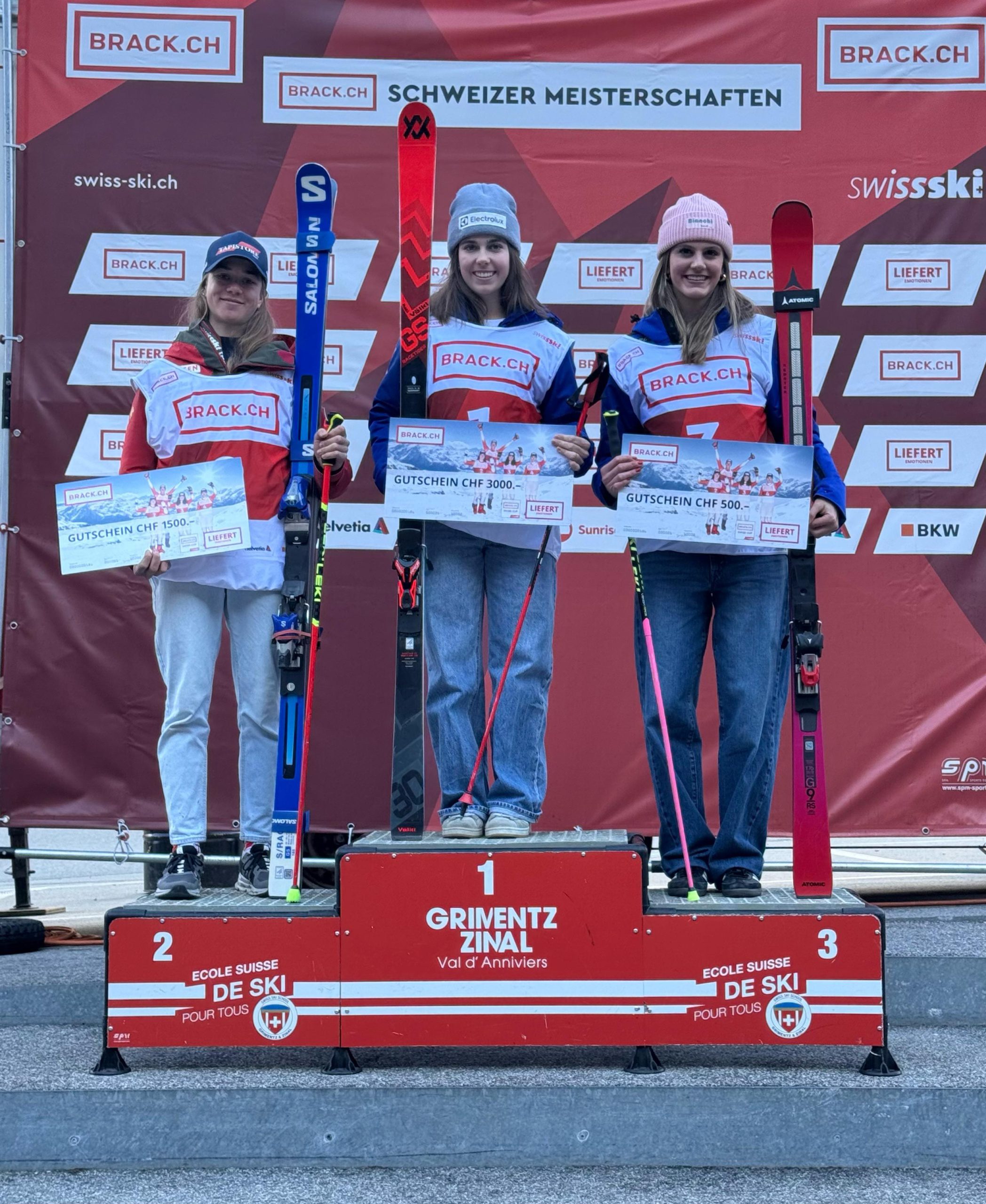 Am zweiten Tag gab es dann Grund zum Feiern! Lara Bianchi sicherte sich mit der Laufbestzeit im zweiten Durchgang den 2. Gesamtrang, dicht gefolgt von Minna Bont. Damit gewann Lara nicht nur den Swiss Cup, sondern auch die Goldmedaillen in der NJC U21 und U18. Minna Bont holte sich Silber sowie den 2. Rang im Swiss Cup. Auch Jeannine Bartl bestätigte ihre aufsteigende Form im Riesenslalom mit einem 5. Rang, während Sophia Flatscher mit einem 8ten Platz erneut ihre FIS-Punkte senkte.